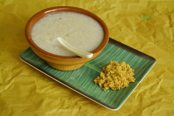 To prepare the dish, rice is boiled in a large quantity of water until it softens significantly. Congee can be made in a pot or in a rice cooker. Some rice cookers have a “congee”; setting, allowing it to be cooked overnight. The type of rice used can be either short (or broken) – or long-grain, depending on what is available and regional cultural influences.Congee is bland and therefore its flavor is enhanced with salt, papadam or such varieties of crispies, pickle, chutney, vegetables, pure ghee, etc. In some regions of South India, sweet variations of the congee using jaggery, coconut, unprocessed candy sugar, buttermilk, milk, etc. are also made.