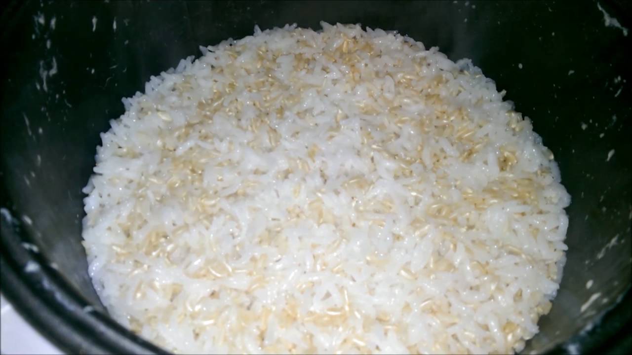 1. Soak 1 padi of rice in 1 padi of water for about 30 minutes, mix well and drain the water.