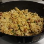 1. Soak 1 padi rice in water. Fry it little by little, to golden brown in a pan. Heat ghee in a pan that can hold 5 palams of water. Drain the water from the soaked rice, and add it to the ghee. Add cumin seed, fried red chilli powder, powdered salt, turmeric powder to the rice